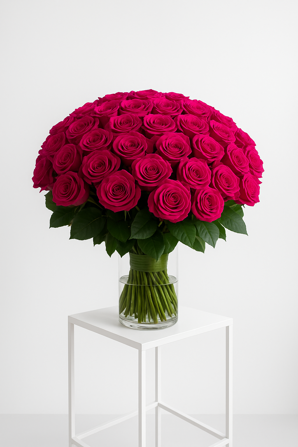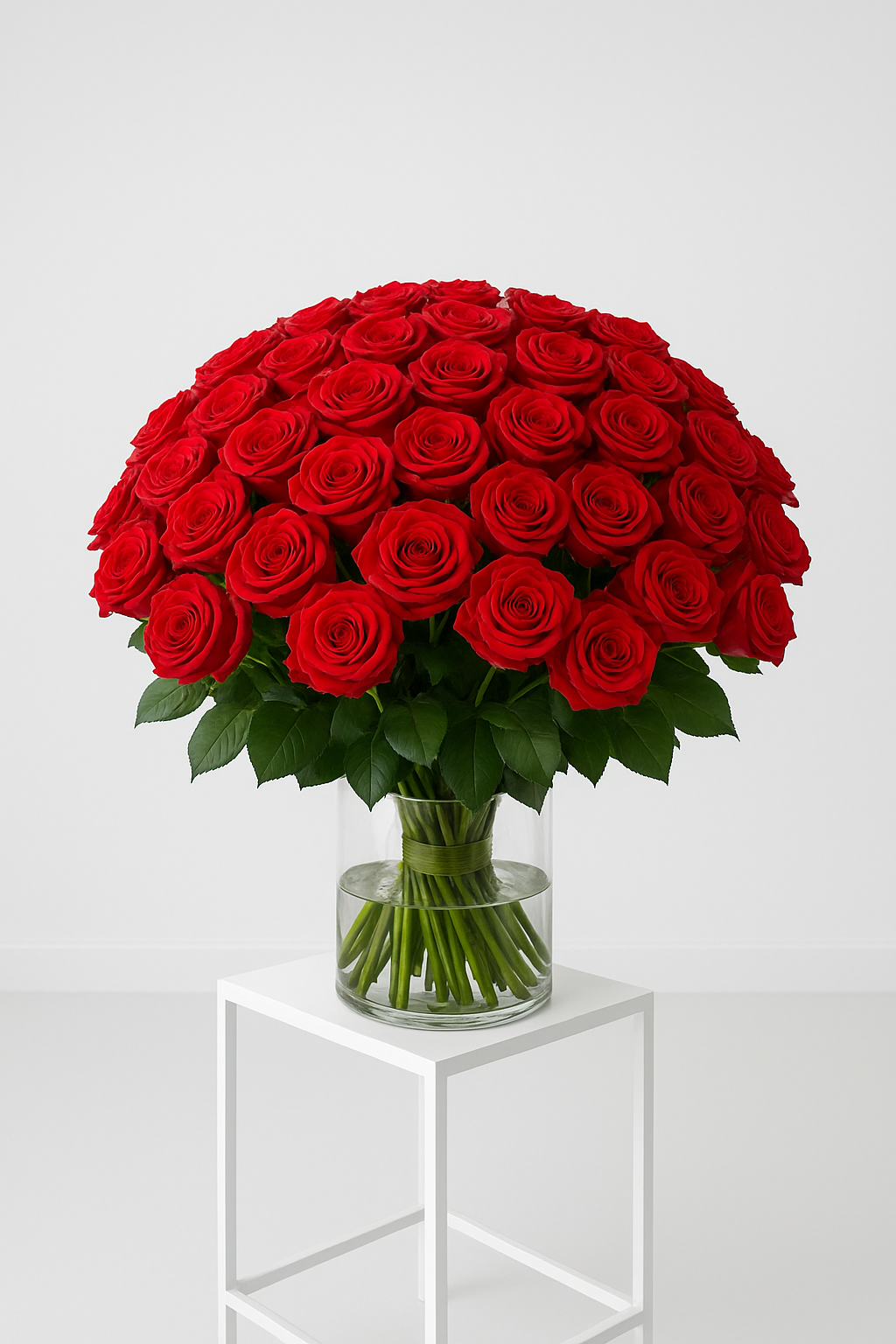 Met een klassiek boeket van ±50 of ±100 rozen weet je altijd indruk te maken. Simpelweg een prachtig boeket vol kwalitatieve rozen.Lengte: 50-60 cm